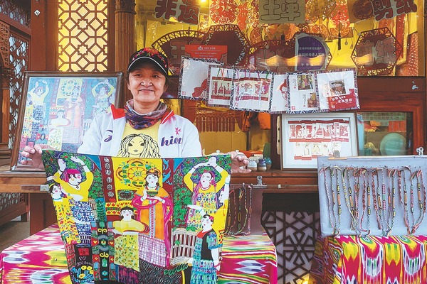 At the International Grand Bazaar in Urumqi, capital of the Xinjiang Uygur autonomous region, Wang Ge, a paper-cutting artist, runs a small booth where dazzling examples of her work are on display in the popular tourist destination.