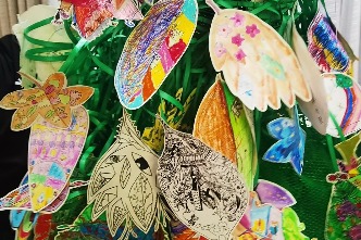 Beijing-based artist presents her leaf-themed garment and her expressive oil paintings during the Art Xiamen 2021, which opened in Xiamen city, Southeast China's Fujian province, on Thursday.