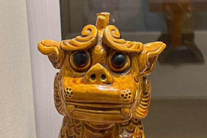 A yellow-glazed animal roof ornament displayed in the Jiexiu Museum, North China’s Shanxi province, has attracted lots of attention from visitors.