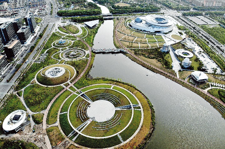 A park in Shanghai, with its water-retention system, is setting an example. When Typhoon In-fa pelted Shanghai with heavy rains in July, Xu Jingxin was worried about the "sponge park" he had been working on for the past two years.