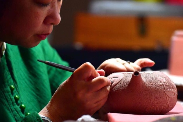 Nixing pottery is one of the four famous potteries in China. It is made of peculiar purple clay on both sides of the Qinjiang River in the city of Qinzhou, south China's Guangxi Zhuang Autonomous Region.