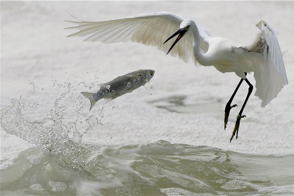 An egret waits to catch a fish in Yundang Lake in Xiamen, Fujian province, on Sunday.