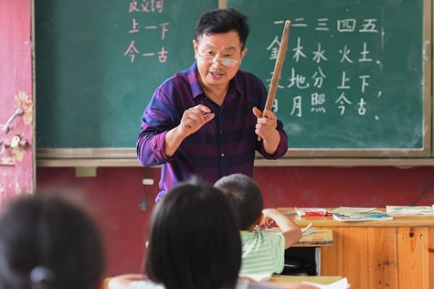 Dong Zhuwen, a 63-year-old rural teacher, starts his day early by shopping at a grocery store to prepare lunches for his students, and on the way to school, he usually picks up several members of his class.