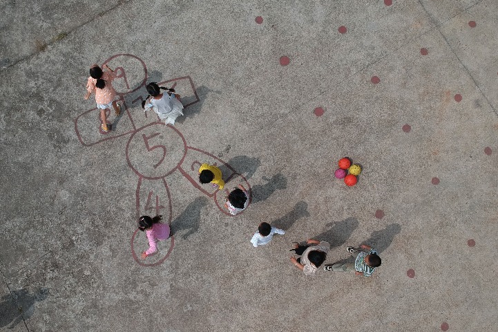Students at the Hequan primary school in Hengdong county, Hengyang, Hunan province, play during a break between classes on Wednesday.
