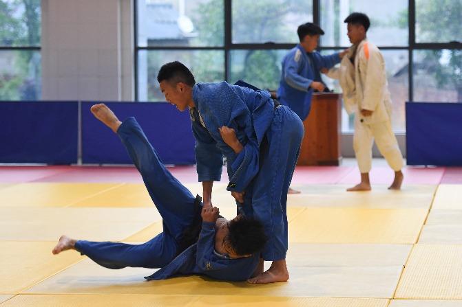 In the playground of Baisha Central Primary School in Central China's Hunan province, 63-year-old Tang Wenhan repeats a set of high-intensity exercises to more than 40 pupils.