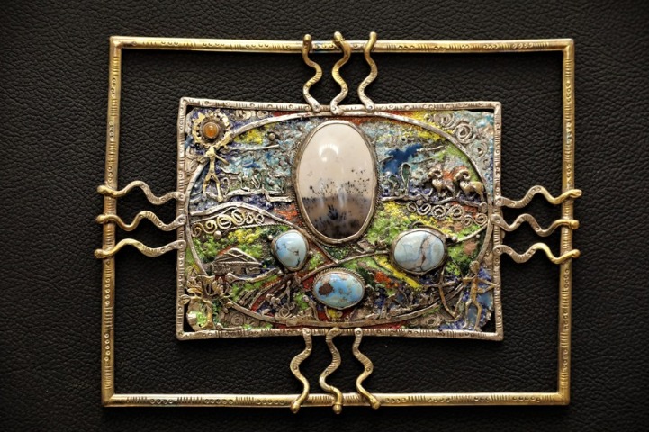 Using a burner and simple tools such as tweezers and a hammer, Berik Alibai turns metals and precious stones into pieces of art.