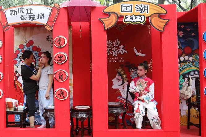 Young performers get ready for Kunqu Opera on Friday. The opera, in Huqiu, Suzhou, Jiangsu province, is part of a cultural gala featuring stage shows, forums and salons, as well as exhibitions. The event will last until Oct 11.