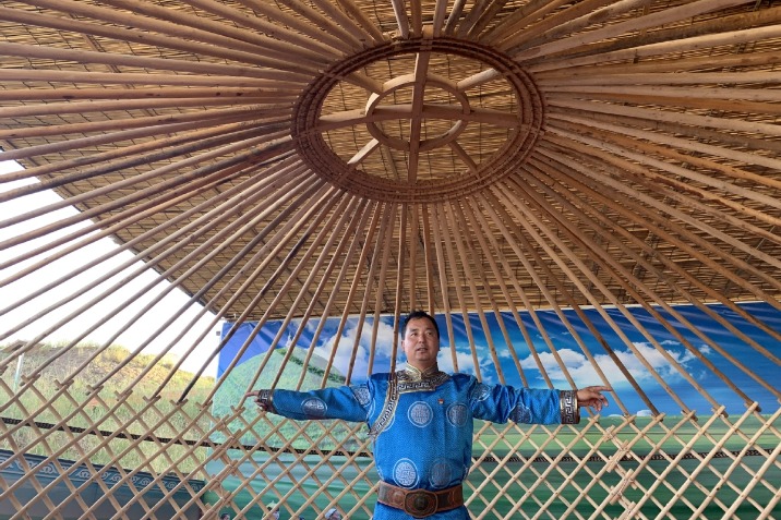 Yurts have been transformed with modern encasements and glass domes in Burenbayar's "experimental yurt field "on the vast grasslands of the Inner Mongolia autonomous region's Hulunbuir.