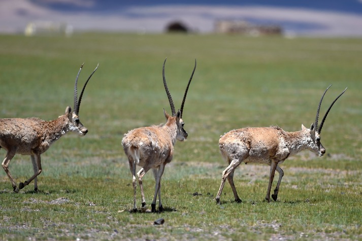 Tibetan antelopes have started to return to their natural habitats after giving birth in the heart of Northwest China's Hoh Xil nature reserve, according to the facility's management.
