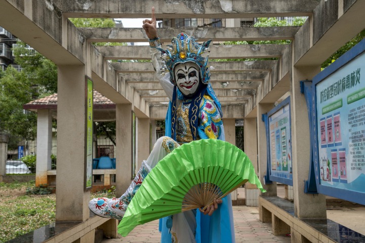 KUNMING-Yao Yao and his team members were dressed in traditional Sichuan Opera costumes in a hotpot restaurant around 6 pm on May 21, ready to thrill diners with their first face-changing show since the outbreak of COVID-19.
