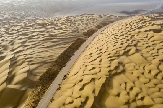 Inspiring feat of engineering is being created by construction workers across the desert in Xinjiang