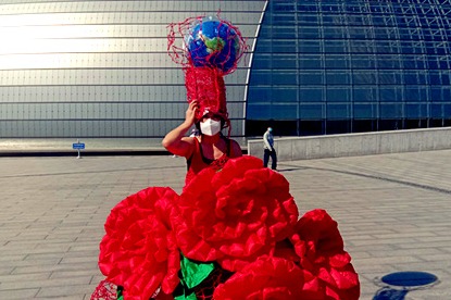 Chinese artist Kong Ning shows her new installation titled "Roses that breathe" in Beijing on Wednesday to mark the World Earth Day.
