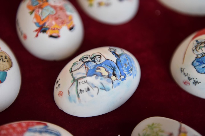 s the world is battling the COVID-19 epidemic, Zhao recently created a series of eggshell carvings showcasing people's fighting spirit during the ongoing crisis.