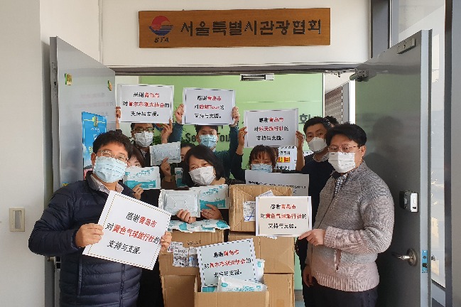 To help South Korea's tourism enterprises amid the COVID-19 emergency, the Culture and Tourism Bureau in Qingdao, East China's Shandong province and several provincial travel agencies donated over 15,000 facial masks to South Korea.