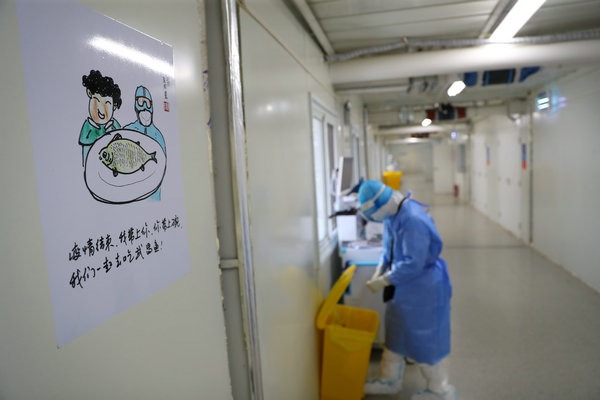 DALIAN-Lovely cartoon pictures drawn on the walls of a ward in a makeshift hospital in Wuhan have proved popular online.
