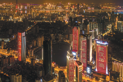 WUHAN-At exactly 6:30 pm, a barrage of lights projects a rallying cry, "Wuhan will emerge victorious", onto the Second Wuhan Yangtze River Bridge, a landmark in the central megacity.