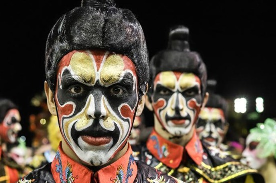 Thousands of spectators danced and sang along to the music as a China-inspired samba show took center stage during the second and final night of Carnival celebrations in the Brazilian city of Sao Paulo.