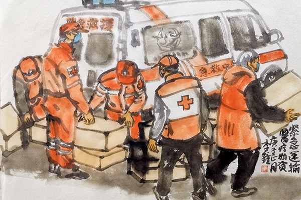 Li Zhong, painter and president of the Artist Association of Fengxian District, Shanghai, has been producing paintings to pay homage to frontline workers in the battle against the novel coronavirus epidemic.