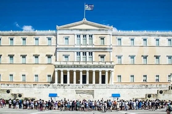 The pedestrian path at the foot of the Acropolis hill in the heart of Athens was lit red on Friday evening for an hour, as Greeks and Chinese people living in Greece held a symbolic gathering and walked around the neighborhood holding Chinese red lanterns.