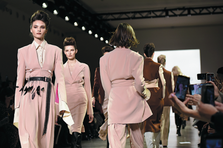 Renowned Chinese fashion designer Wang Tao on Tuesday showcased her fall/winter 2020 collection at the ongoing New York Fashion Week, stressing women's power with the theme "coffee at dawn in Paris".