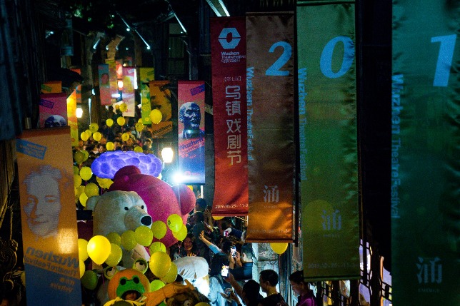 once a year in the town of Wuzhen all the tourists can be audience members