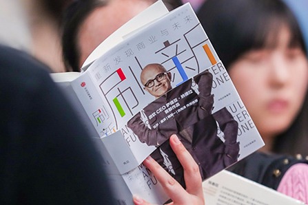 A book-sharing event to discuss Microsoft CEO Satya Nadella's autobiography Hit Refresh: The Quest to Rediscover Microsoft's Soul and Imagine a Better Future for Everyone was held in Beijing on December 3.