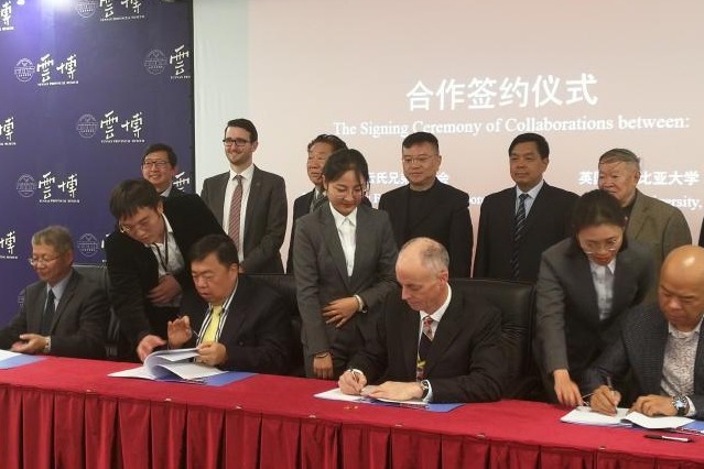 The Yunnan Provincial Museum and Yunnan Art Gallery -- joined the Singaporean Woon Brothers Foundation and UK University of Northumbria in signing a cooperation agreement, formalizing a new multiparty partnership of culture and education, in Kunming, Yunnan province, Nov 26.
