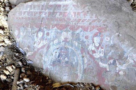 Three pieces of ancient Tibetan Buddhist frescoes dating back to the 13th century were found in Northwest China's Qinghai province, local cultural and tourism authorities said.