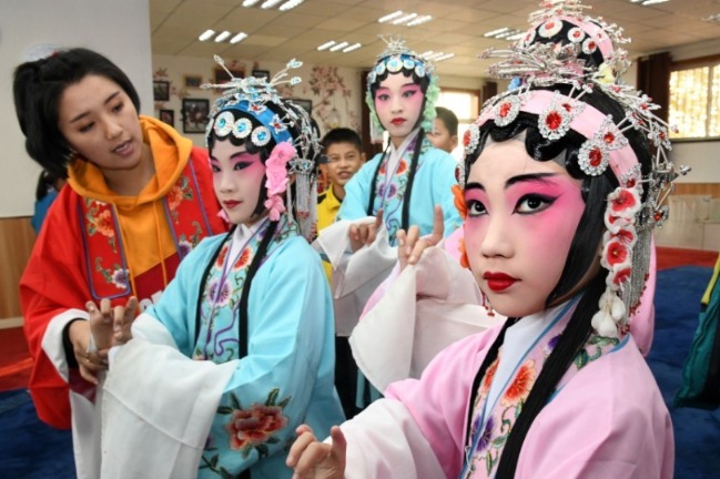 Nearly 100 schools in Qingdao have established Peking Opera interest groups or clubs to develop students' sense of arts and inherit the traditional Chinese culture.