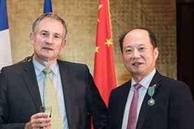 Wang Ke, chairman and general manager of Le Coq Sportif's Chinese franchise, was awarded the Order of Arts and Letters, one of the highest French government honors, in the French embassy in Beijing on Wednesday.