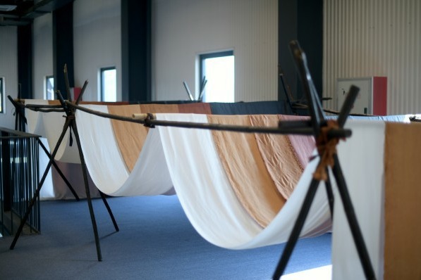 Models walk the runway at a fashion show during an exchange event at the protection base for the national intangible cultural heritage gambiered Guangdong silk in Foshan, South China's Guangdong province, on Nov 12, 2019.
