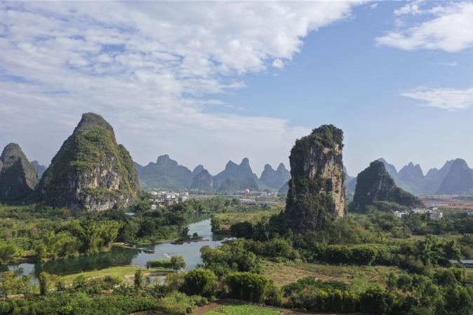 Aerial photo taken on Nov 14, 2019 shows the scenery of Yangshuo county, Guilin city, South China's Guangxi Zhuang autonomous region.