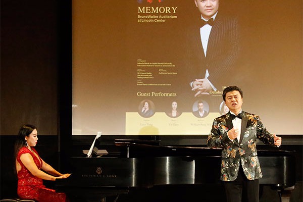 Chinese tenor Su Dawei gave a recital at the Bruno Walter Auditorium at Lincoln Center, New York, Saturday evening, to celebrate the 70th anniversary of the founding of New China.
