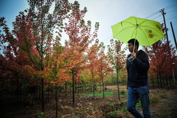 Wang Kun, who was previously a white-collar worker in Beijing, now takes care of 300,000 trees scattered across the landscape in his hometown in North China's Tianjin.