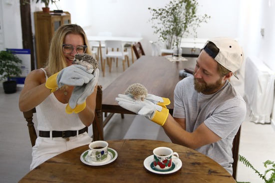 Situated in Beijing's Shichahai scenic area, CAVE looks no different from any other cafe in the city on the outside, but people stepping in for a cup of coffee will find it interesting inside-some customers are holding and caressing hedgehogs in their palms.