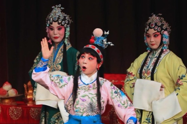 Artists with China National Peking Opera Company perform "Female Generals of the Yang Family", a classic Peking Opera masterpiece, in Minsk, capital of Belarus, Sept 2, 2019.