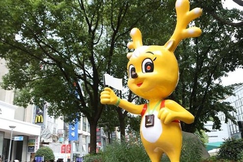 As the 2019 Shanghai Tourism Festival approaches, the festival's mascot Lele, meaning "joy", was unveiled to greet visitors in downtown Shanghai on Saturday. The name echoes the theme of this year's festival, "Walking into Beauty and Joy".
