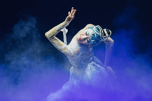 Artists perform on stage during the Chinese drama dance show named "To Meet the Grand Canal" in Moscow, Russia, on Aug 16, 2019.
