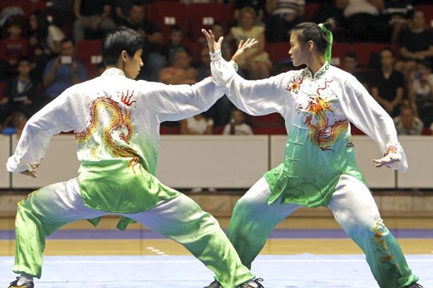 Chinese martial arts athletes staged performances at a multi-purpose gymnasium in southern Bucharest late Wednesday, stunning local martial arts enthusiasts.