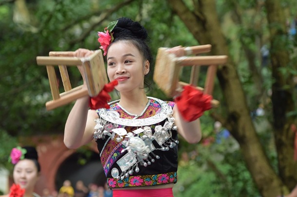 The bench dance of Southwest China’s Guizhou province is an improvisational dance performed by women of the Miao ethnic group after drinking. It is mainly popular in Kaili, Huangping, Taijiang, Shibing and other Miao villages in Guizhou.