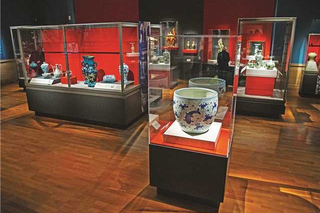 Dozens of ancient Chinese treasures including a rare Ming Dynasty (1368-1644) tankard and a 500-year-old cup that performs a practical joke are now on display at an exhibition in Scotland.