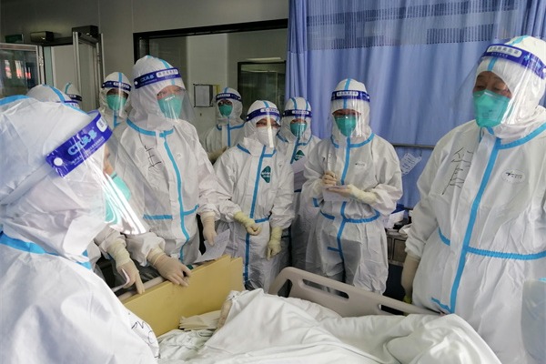 Every morning, after breakfast, Guan Xiangdong quickly wears his heavy protective suit and visits the ward area to participate in the treatment of critically sick patients.
