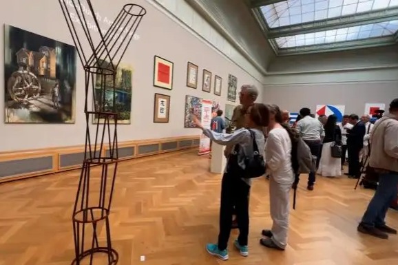 Chinese and Dutch artists held an art exhibition on Saturday to commemorate the 50th anniversary of diplomatic ties between China and the Netherlands.
