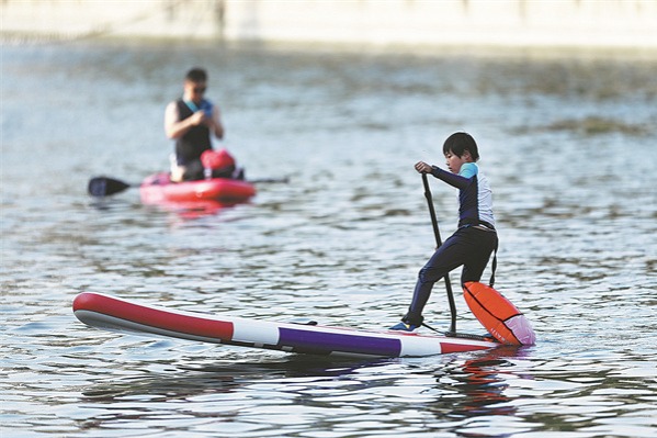 Urban dwellers in China are taking up paddleboarding to beat the sweltering summer heat and get closer to nature as COVID-19 restrictions limit their chances to go on long-haul trips.