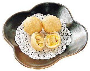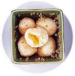 南瓜汤圆通常以南瓜做皮,这个则以南瓜做馅,外层蘸芝麻增添香口的感觉。汤圆放于桂花糖水内,外香内甜,保证这个元宵节会甜蜜蜜。