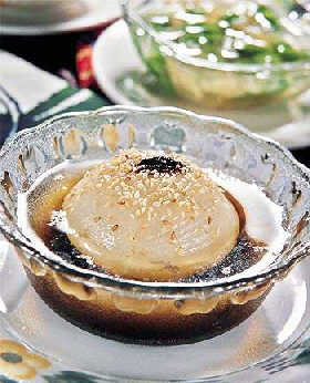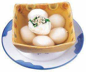 可说是层次感最丰富的汤圆,是云南人过年必吃的早点,馅料有火腿、花生蓉及晒干的云南桔皮,最精彩的是汤底,用云南野生玫瑰,晒干后加入片糖及黄酒放入山洞内发酵半年以上,做成玫瑰花酱储存。吃时宜将汤圆切开,让花生粒及桔皮的香跟带清醇酒香的玫瑰花汤融为一体,几种香味同时向味蕾冲击,实在非比寻常。