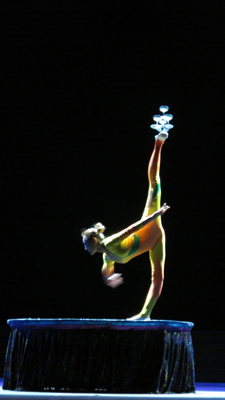 “春雨工程——北京市文化志愿者边疆行”文艺演出,中国杂技团演员邹沫表演杂技《单人滚杯》