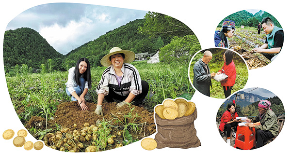 Li Jing (left) is helping a fellow villager cultivate the selenium-rich potatoes, the famous local agricultural product in Enshi Tujia and Miao autonomous prefecture, Hubei province.[Photo provided to China Daily]