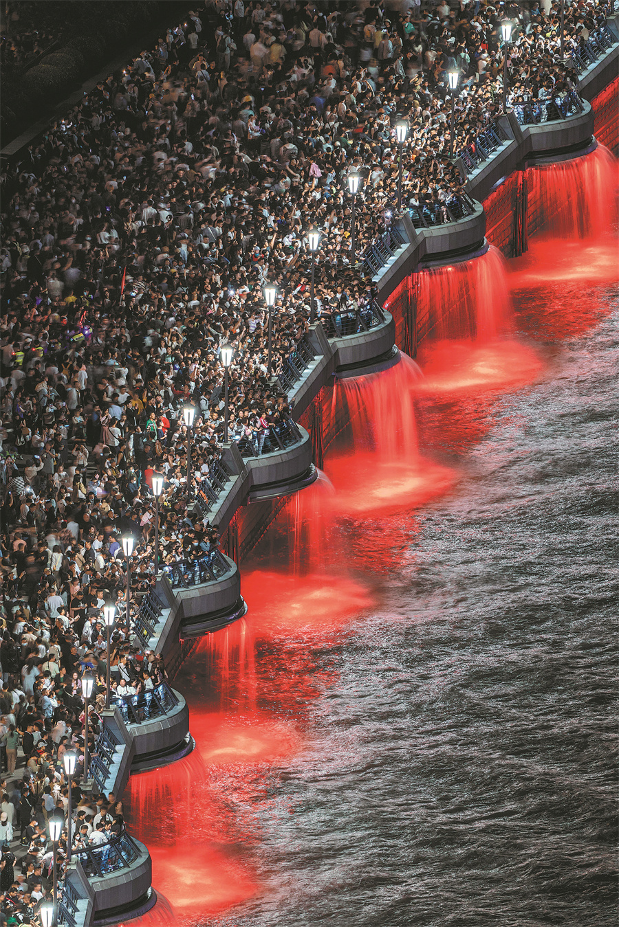 Thousands of tourists flood the Bund of Shanghai on May 1, the first day of the five-day Labor Day holiday, showing a huge rebound for domestic travel in China.[Photo provided by Shen Ran/For China Daily]