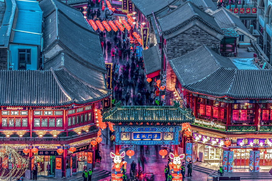 A view of the Tianjin Ancient Cultural Street. [Photo by Yu Guanghui/For China Daily]